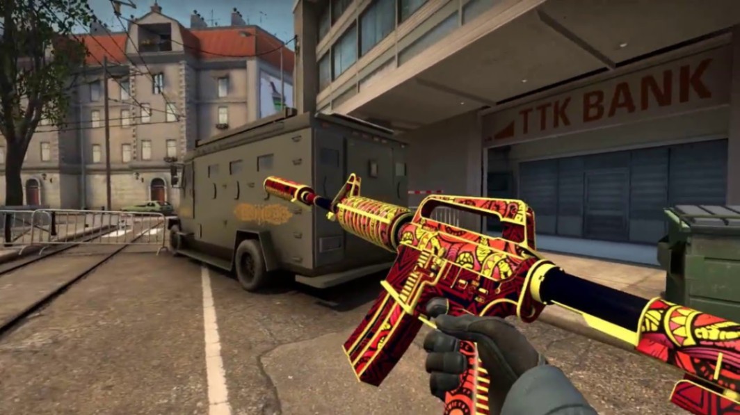Fuel Injector fits the yellow theme almost too well. In FN or low-float MW, it pops hard under CS2 lighting. Chantico’s Fire brings warmer reds and golds, tying the inventory together visually.